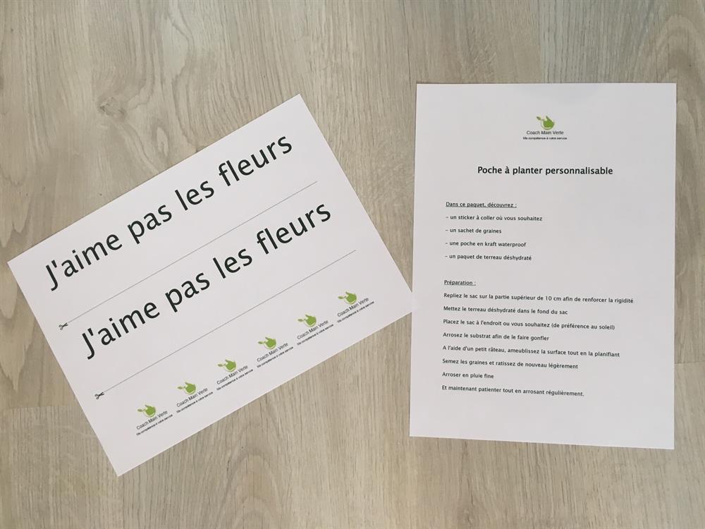 Vous disposez d'un sac en papier kraft waterproof, d'un paquet de terreau déshydraté et d'un sachet de graines.